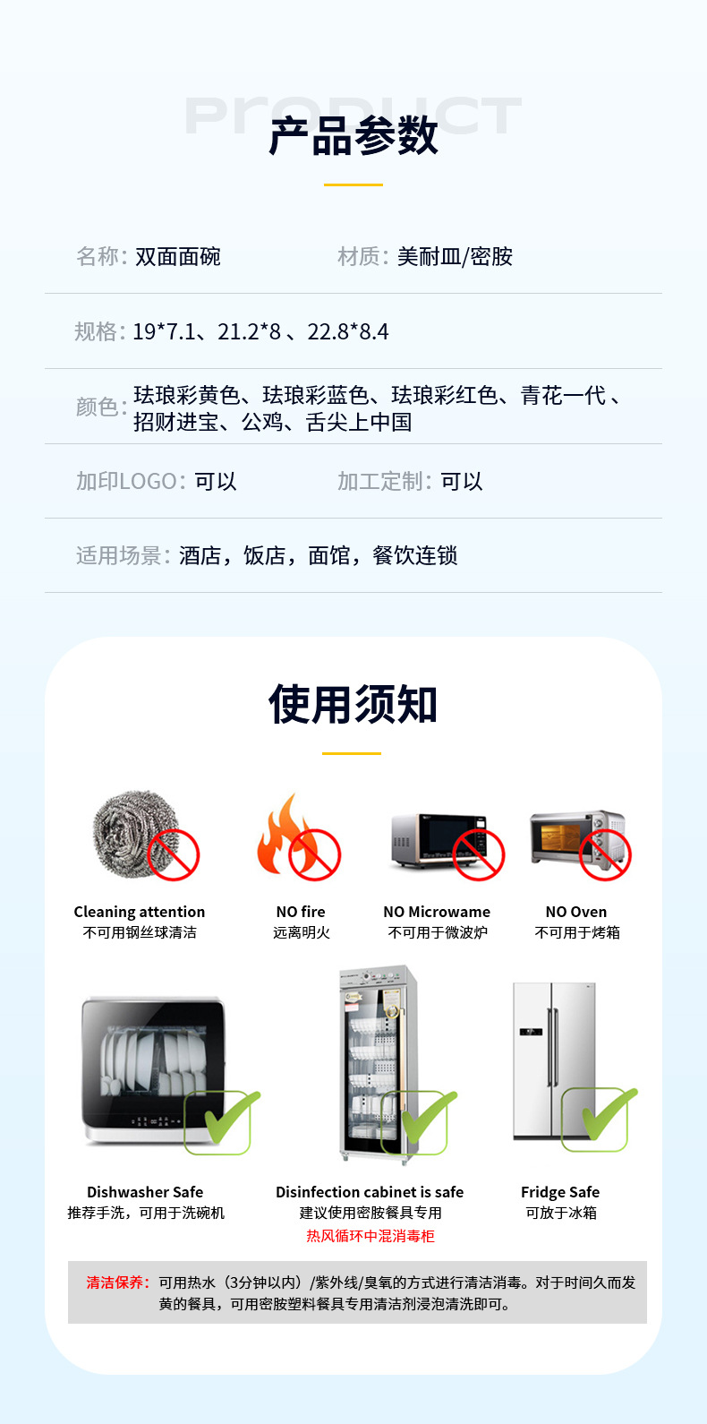 哇噢定制仿瓷复古拉面碗密胺餐具青花一代大碗米线碗牛肉汤面碗