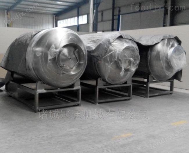 小型真空滚揉机,腌制机,腌制机,制品加工厂设备,冷冻食品厂设备,休闲食品厂设备,中餐店设备均适应。适用于西式香肠、火腿、培根、烤肉以及禽类、中式酱卤类、休闲类肉食品的腌制加工。小型真空滚揉机,特别对传统中式产品加工,加入滚揉处理工序,可以缩短腌制浸泡时间、改善效果,提高肉品品质。利用物理冲击的原理,让肉块或肉馅在滚筒内上下左右翻动,相互摔打、撞击,从而达到腌渍作用。腌渍液被肉充分吸收,同时可以增强肉的结合力和弹性,提高了产品的口感以及断面效果。滚筒两端均采用旋压式封帽结构,zui大的增加滚筒内的摔打空间,使滚揉产品的效果均匀,噪音小,性能可靠,操作简便,使用效率更高。