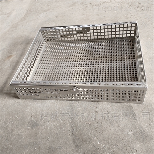 这是消毒锅口 服液灭菌盒的一侧,中间用铆钉拉住、固定,可以掀起。这客户定制的是方型孔。也可以是圆孔。孔的形状、孔径的大小都可调。口服液消毒盘灭菌盒 食品杀菌设备