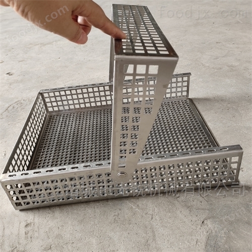 这是消毒锅口服液灭菌盒的一侧,中间用铆钉拉住、固定,可以掀起。这客户定制的是方型孔。孔的形状、孔径的大小都可调节。