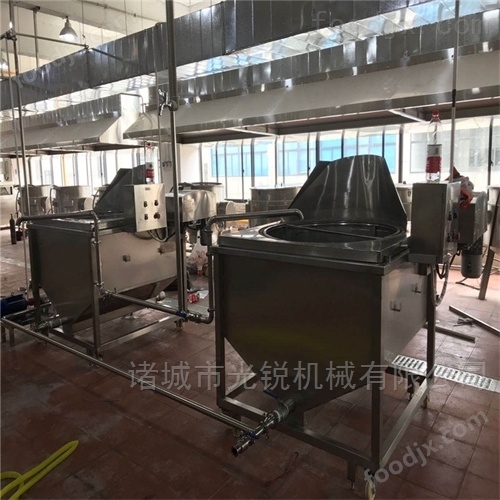 光锐机械有限公司多功能自动花生米油炸机是油炸花生米、蚕蛹、蚕豆等食品厂家的好伴侣。花生米油炸后快速使用甩油机甩油,由提升机提升到摊凉线进行摊凉,这样就可以保持花生米的鲜艳色度。一米的单锅20分钟能油炸150斤左右,100斤左右的花生米10分钟左右出锅。适用于豆类、坚果类、膨化类等多种产品的油炸。