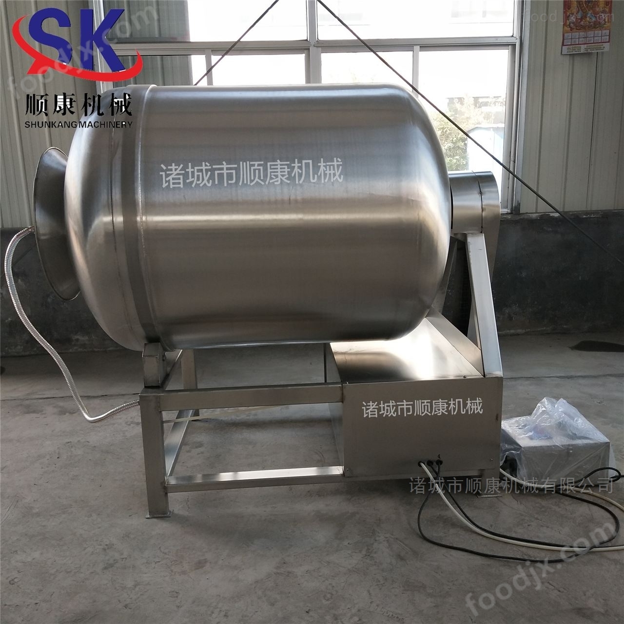 滚揉机是利用物理冲击的原理,让肉在滚筒内上下翻动,相互撞击、摔打、达到摩擦、腌渍作用。