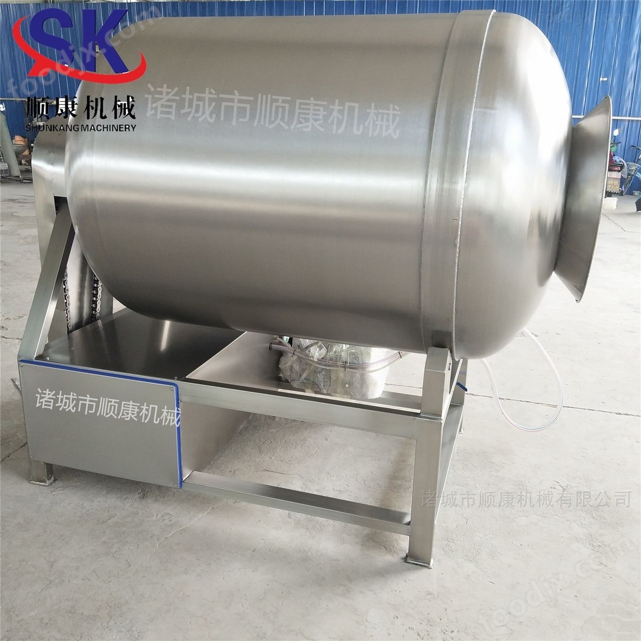 顺康鸡柳真空滚揉机价格的特点:1、本机采用优质不锈钢,圆型封头滚揉空间大、设计合理、运行噪音小。 2、浆叶圆弧形设计*,使腌料分布均匀,对腌料不造成伤害,产品的柔嫩性和外观得到提高。 3、防水电脑控制用户设定滚揉机自动正转,间歇、放气、抽真空。使该设备真正实现了自动呼吸功能。 4、本机还具有变频功能,使滚揉转数可根据工艺任意调整。