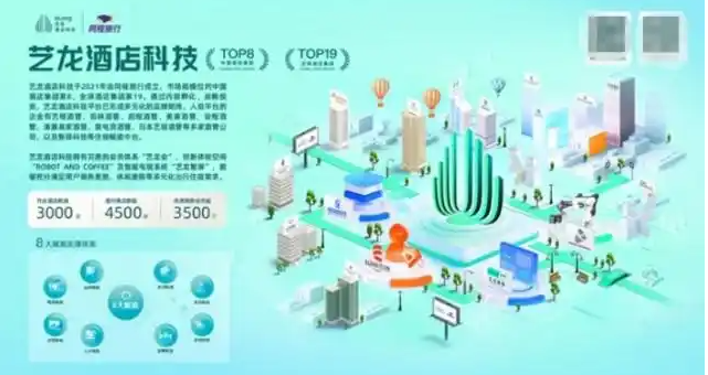截至2025年,艺龙酒店科技平台已实现开业酒店超3000家、签约突破4500家的规模,服务网络覆盖全国超300个城市,成功落地马来西亚、印度尼西亚、柬埔寨、阿联酋等8个海外国家,实现中国酒店集团规模第8,全球酒店集团规模第19。
