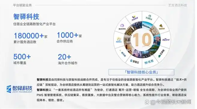 同时,平台已实现产品化、标准化输出。目前,艺龙酒店科技中台供应链公司——智驿科技(由同驿科技与旅智科技合并而成),综合提供PMS智慧管理系统、供应链集采、客房置换、整合营销等服务,累计合作酒店已超过18万家,以远超体系内酒店规模的服务范围覆盖海内外众多城市。艺龙酒店科技逐渐成为以技术为底座,以品牌为核心,供应链为支撑,能够为全行业提供数字化解决方案和成本优化服务的产业生态平台。