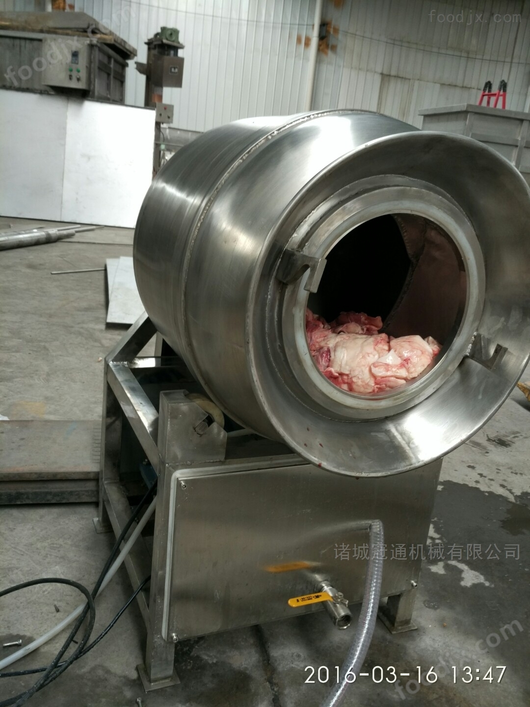 GT-1000L真空滚揉机为变频系列滚揉机,是在真空状态下,利用无聊冲击原理,让肉块或肉馅在滚筒内上下翻动,从而达到腌制作用。腌渍液被 肉成分地吸收,增强肉的结合力和保水性,提高产品弹性及出品率。本机采用不锈钢制作,结构合理,运行平稳,噪音小,性能可靠,操作简单,设备使用效率高。