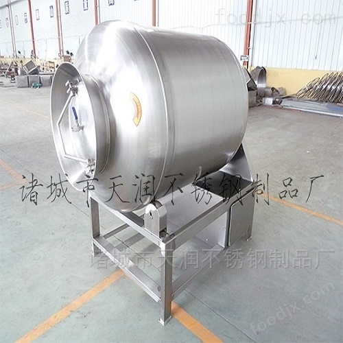 真空滚揉机是用于肉类制品的腌制和原料在真空状态下混合的专用设备,通过真空作用可以将块状肉的纤维组织拉张疏松,使常压腌制变成为负压腌制,通过转动摔打,使静态腌制为动态腌制,在恒定的温度条件下,使自然腌制变为强化腌制,提高了工作效率。使工作更轻松,省时省力。易于清洗。
