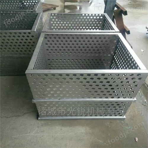 诸城市光锐机械有限公司专业生产大型不锈钢杀菌筐。用于大型杀菌釜内饮料类等杀菌使用。304不锈钢板材,激光切割,数控冲孔,孔径大小可调,传热性能好。灭菌筐规格可定,样式多样,坚固耐用,耐腐蚀,氩弧焊接工艺,表面处理,无毛刺,不刮袋。
