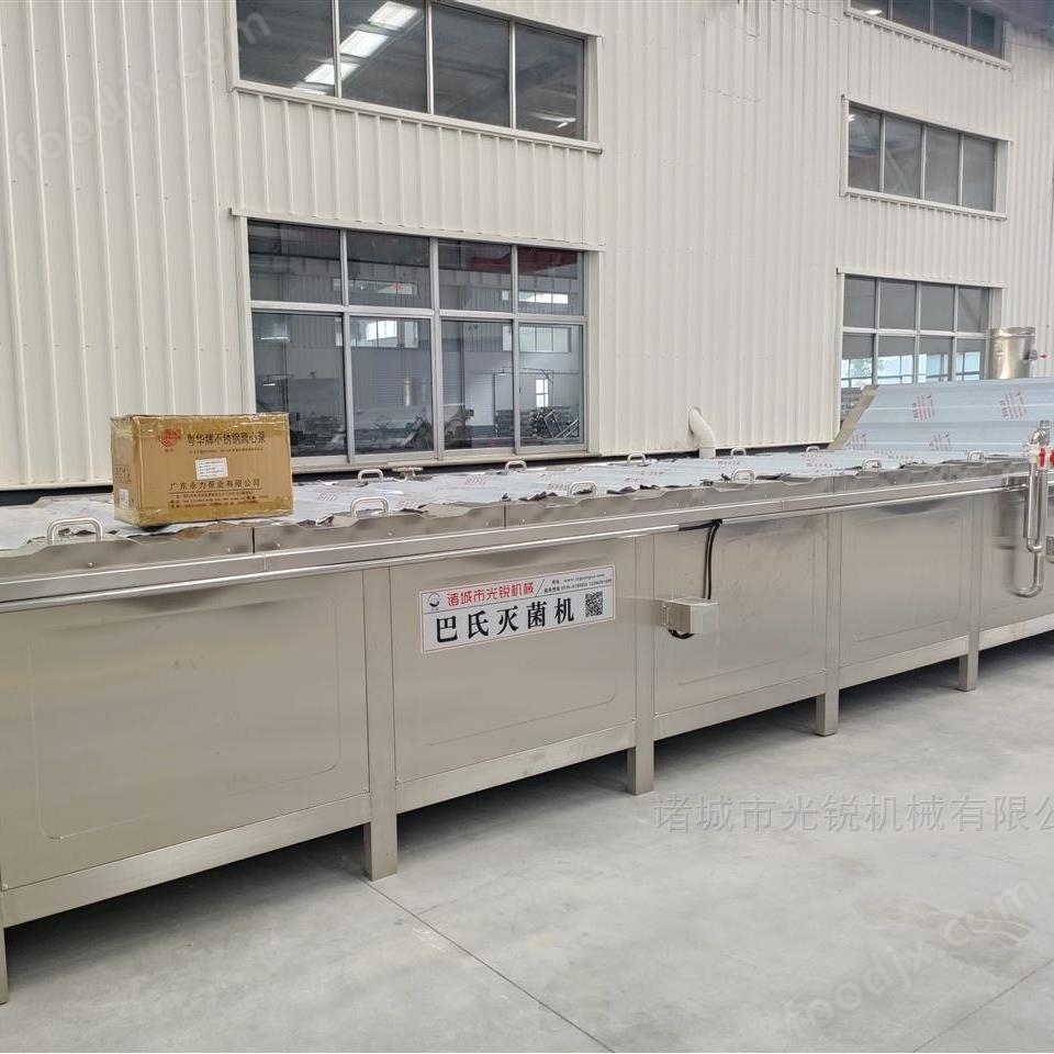 巴氏灭菌机采用巴氏杀菌法,对各类包装产品蔬菜或罐装食品通过温度自动调节,将杀菌槽中的热水温度控制在80-90摄氏度之间,即能起到杀菌效果,又能保证蛋白质等营养成份不在较大温度范围内波动,保持食品原有的品质,达到对食品不加防腐剂和添加剂,而延长保质期,从而保护了人们的生命健康。同时对杀菌后的物品通过能却水进行冷却并用强风将包装物表面吹干后包装入库可延长食品储藏期。