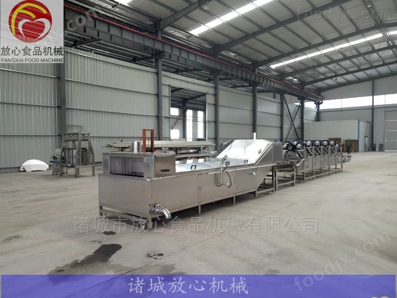 金针菇蒸煮机是在设备的自动化控制下利用输送带一头进一头出的方式对金针菇进行蒸煮加工,时间可以设置。