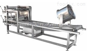 设备介绍:用于生产豆腐干。利用PLC控制程序进行自动给板、上脑、叠板、压榨。压榨采用液压原理,自动调整压力盒行程。其特点是:效益高、操作人员劳动强度低、计量计重自动控制,能达到产品的标准、统一和产品质量的稳定。