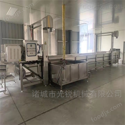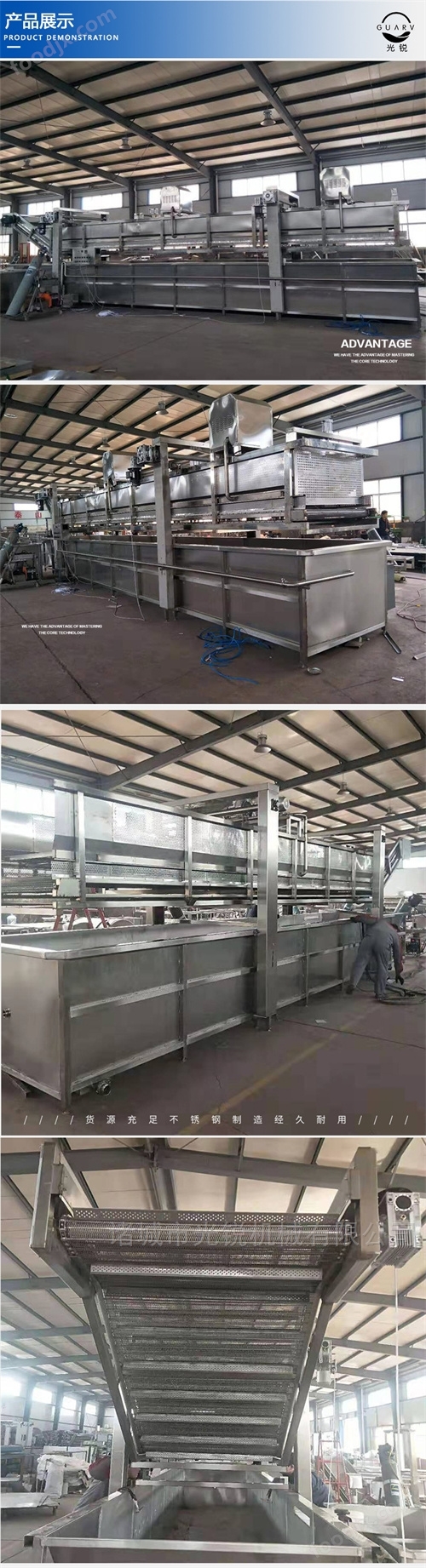 诸城市光锐机械有限公司解冻线采用SUS304不锈钢制作,可用于鸡肉、鸡腿、鸡翅、鸡爪、鸭脖、牛肉、羊肉、鱼等禽肉类的连续解冻,也可用于魔芋等果蔬的解冻,规格可根据客户要求定做,设备内部有循环系统,确保产品的解冻效果和时间,可接入加热系统,主要以蒸汽为主。可配套设备连续自动卤制线,实况流水线作业,符合卫生要求。