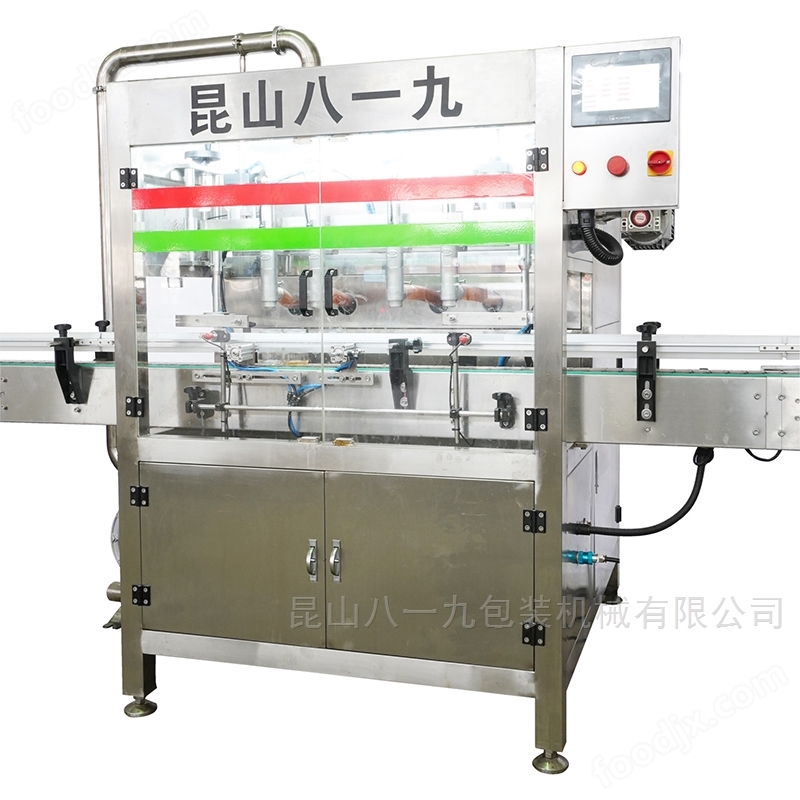 是采用*的技术,使用PLC和电子光纤传感器控制,微电脑文本显示触摸人工界面操作.有瓶灌装.无瓶停灌.并设有计数功能.可把当日-当月的产量记录下来.该设备主要用于各种膏体酱类的灌装.适用于食品酱类灌装.设备表面和物料接触面均采用304不锈钢材料制造,无滴漏,无拉丝,易清洗.*,*符合国家制药行业GMP标准要求.(主要用于老干妈酱类、辣椒酱、牛肉酱、鸡丁酱、黄豆酱、番茄酱等灌装)。