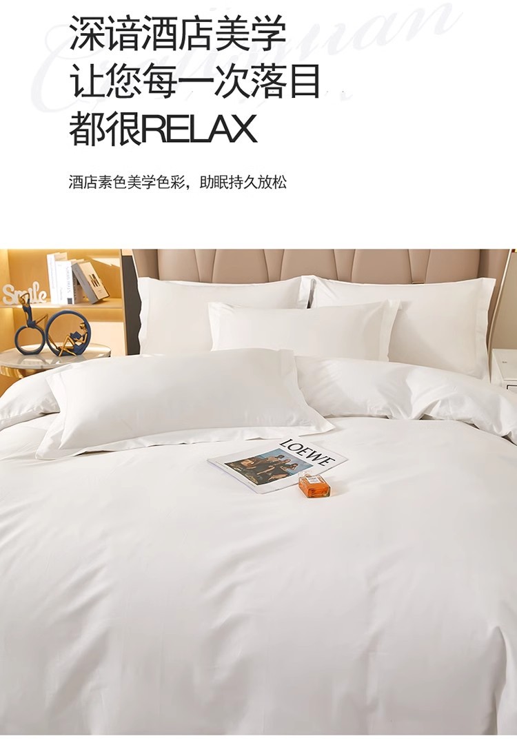 南通居筑纺织品有限公司发布的酒店民宿布草白色四件套宾馆床上用品纯棉被套床单枕套三件套批发图集库